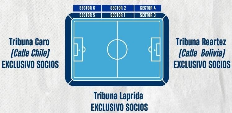 The name of the stands along with the rows are depicted on the seating arrangement chart of José Fierro Monumental Stadium. It is an reference map and the numbers can be slightly different.