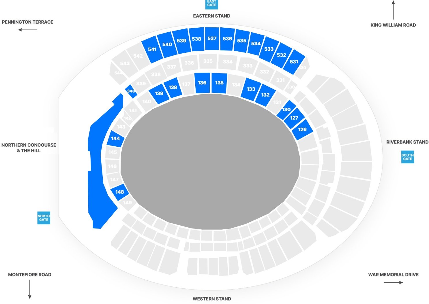 It can easily accommodate 70000 visitors during the hosting of musical events and concerts. Temporary seats and standing areas are set up on the Adelaide Oval ground in front of the stage to accommodate a large crowd. Visitors can print the Adelaide Oval seat layout while visiting the stadium, which helps them locate seats easily. The design of the stadium can be slightly different as per the organisers’ demand. The location of the general admission area, temporary seating, temporary standing, and stage is depicted on the Adelaide Oval concerts seating map.