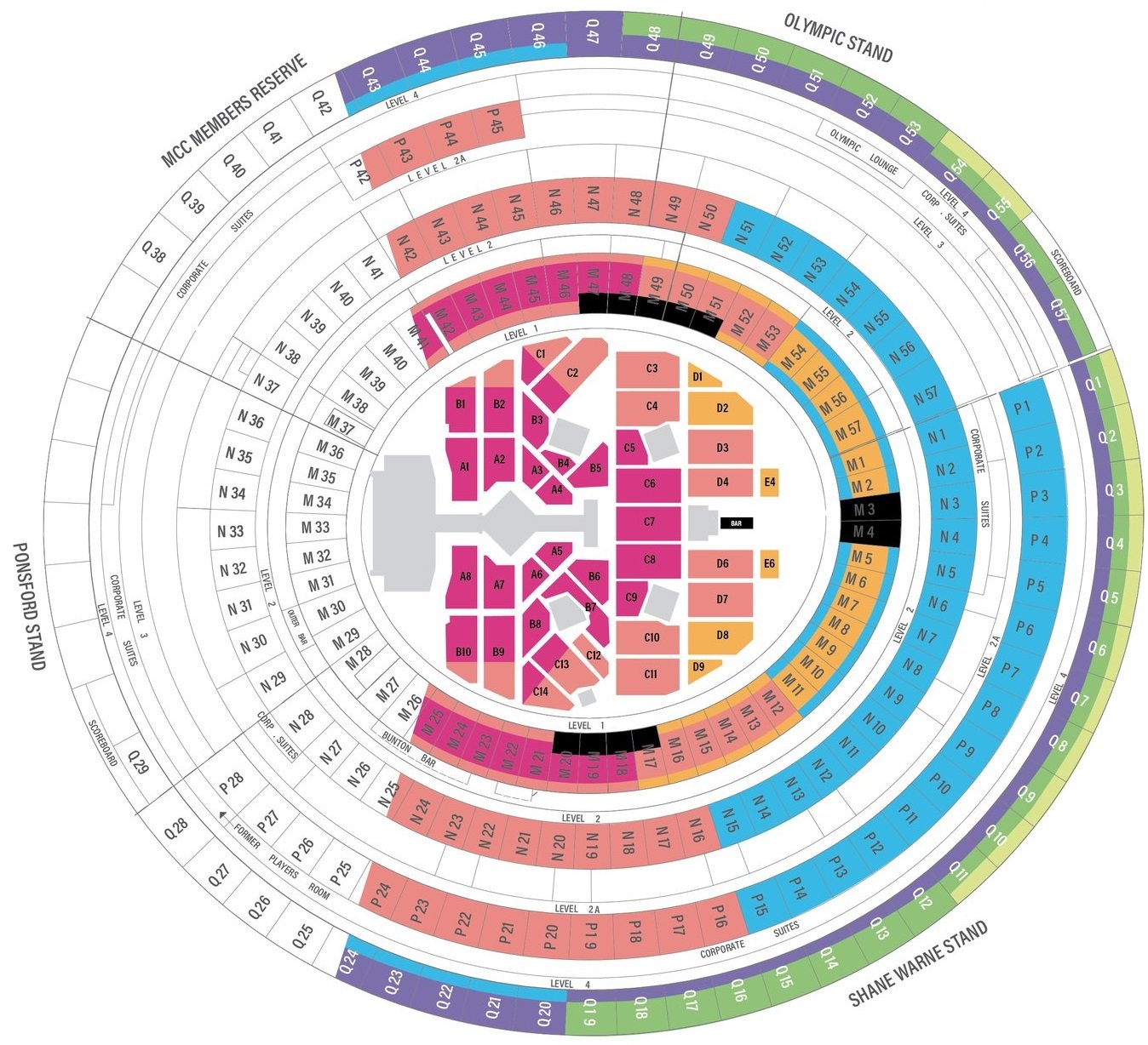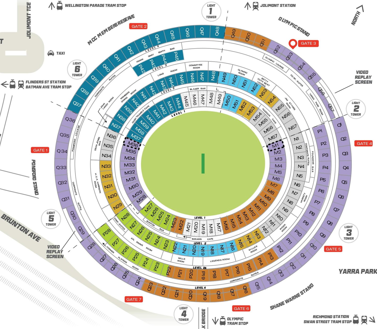 The seats situated on levels 4 and 3 are among the cheapest tickets in the MCG to enjoy a cricket match. Visitors can check the seating layout along with the table to choose the best seats according to their budget.
