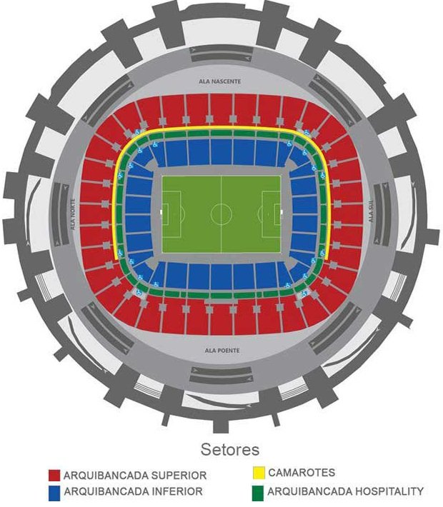 The names of the stands and levels are coloured differently for easy identification. High Voltage concerts and musical events are also hosted at this ground regularly. It is one of the largest stadiums in Brazil and easily accessible from all parts of the country; therefore, it is one of the preferred venues for concerts.
