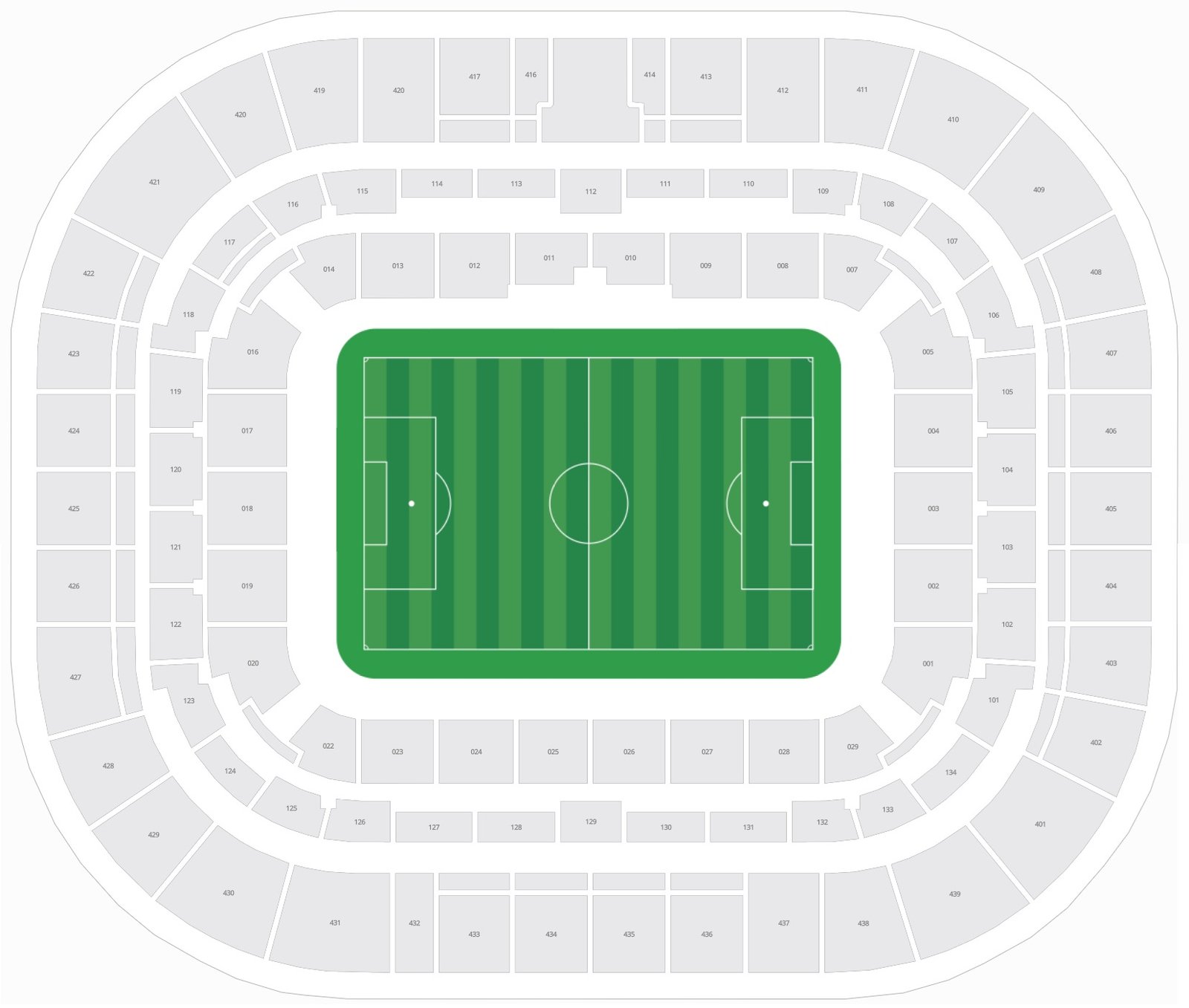 The location of all the stands, along with their rows, can be seen on the seating plan layout. It is a large stadium, and the seats of the stadium can be located with the help of a seating plan. The location of the field, goal posts, players’ area, zones, etc, is mentioned on the seating chart, and it helps to book Groupama Stadium tickets. This stadium has multiple entry doors, and the location of all the doors is displayed on the seating plan.