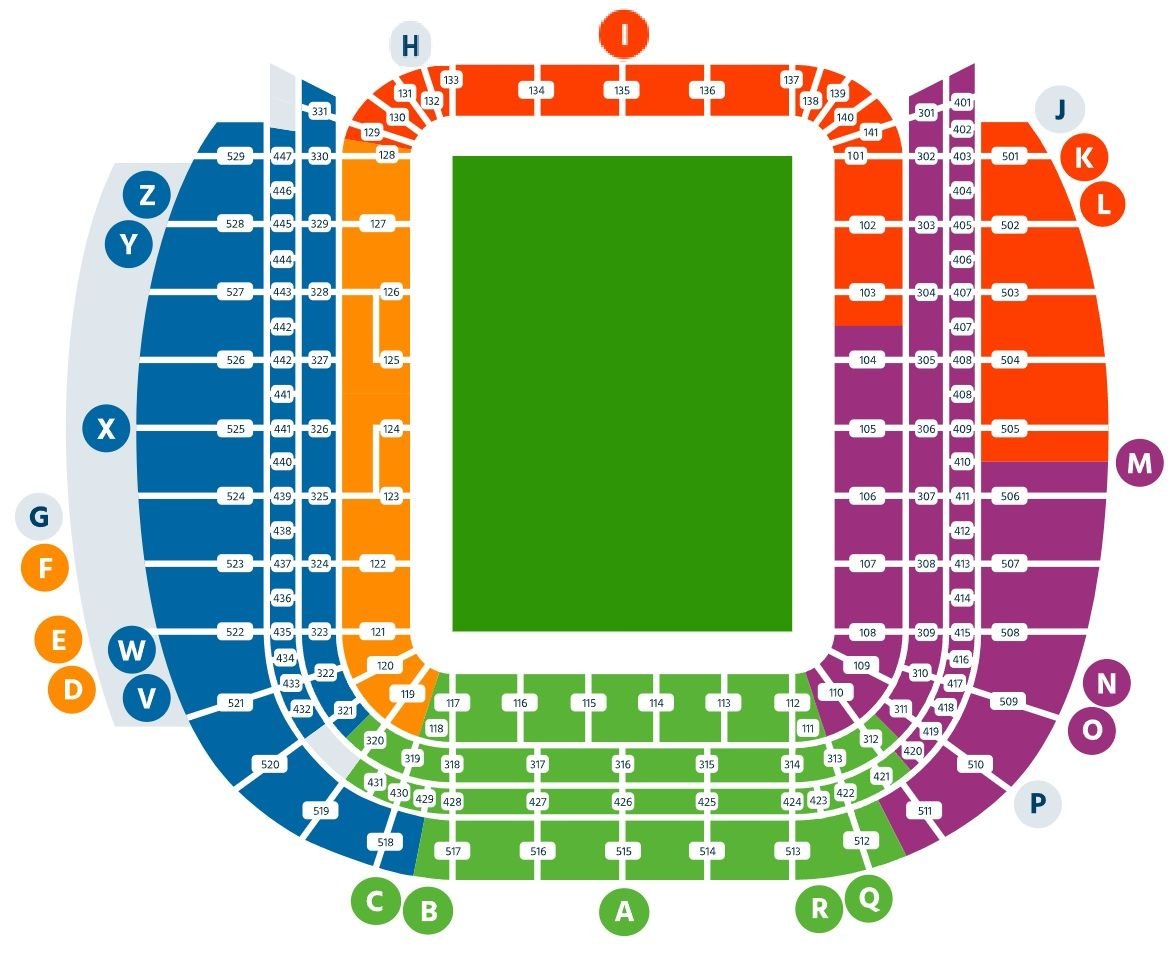 The detailed map of the stadium shows all the seats of the stadium along with the names of the rows and stands. Lansdowne Road is one of the biggest stadiums in Ireland and can accommodate more than 65000 visitors. The seats of the stadium are spread across multiple floors, and proper arrangements are made for the physically challenged guests. A temporary stage and seats are set up on the ground to accommodate the maximum number of spectators. A concert map of the stadium is useful during the hosting of high-voltage events and concerts.
