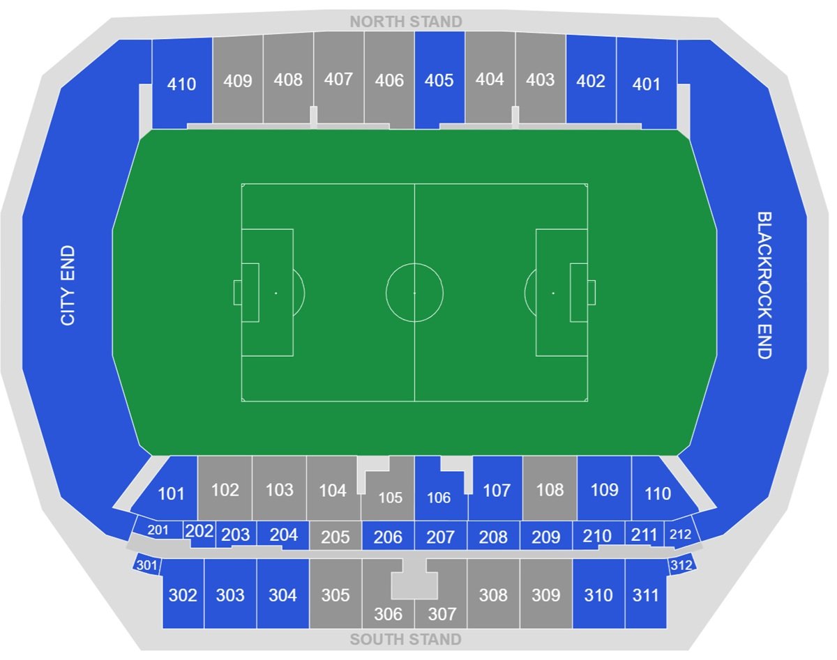 Páirc Uí Chaoimh is a big sporting stadium in terms of seating capacity. It can accommodate 45000 visitors for the events hosted in the stadium. With the help of the Páirc Uí Chaoimh seating map with seat numbers and rows, it is easy to find and book best-view seats in the stadium. Páirc Uí Chaoimh Seating layout is very useful to locate the booked seats in the Stadium.