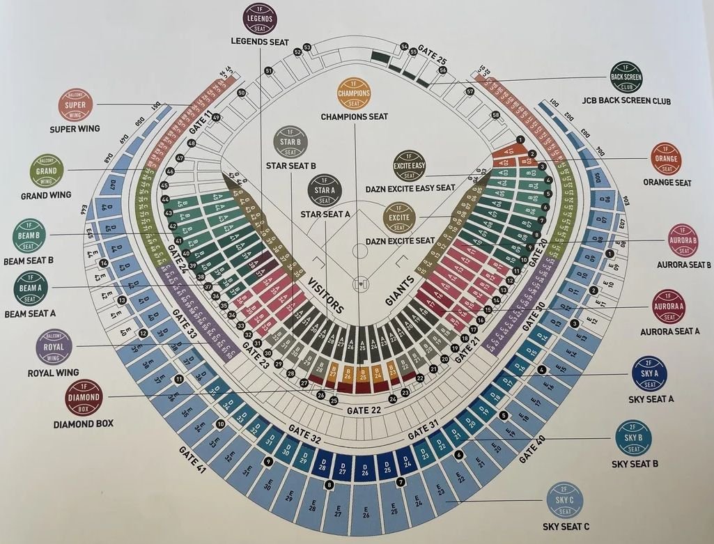 Tokyo Dome Seating Plan (東京ドーム座席表)