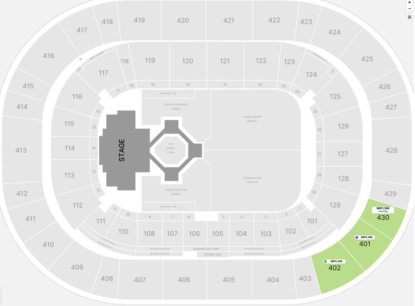 The location of the stage, general admission area, front standing area, Sky box, executive area, VIP seating, name of the stands along with the number of rows are mentioned on the seating arrangement map. Johan Cruyff Arena Seating Plan with seat numbers and rows along with the stand helps in finding the best view seats inside the stadium. All the important details is depicted on the map for the convenience of visitors.
