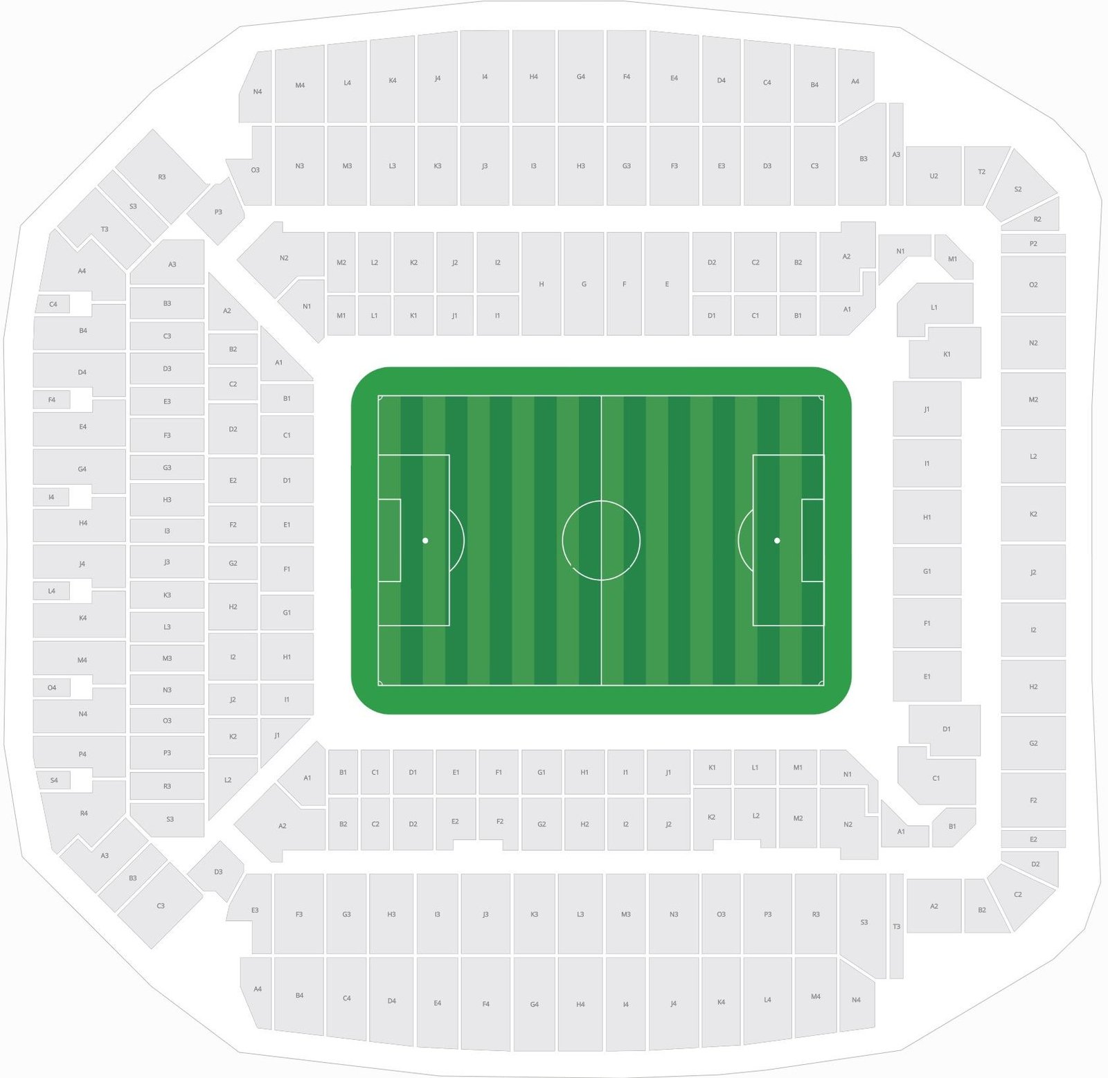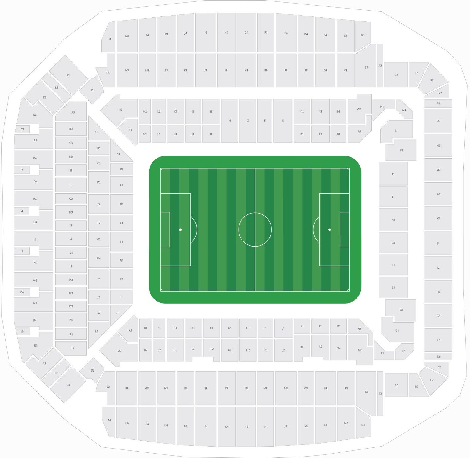 All the stands of the stadium along with the row numbers and sections are mentioned on the stadium map. The locations of accessible seats, wheelchair-friendly areas, ramps, and other facilities can be seen on the map. The location of the field, goal posts, players’ area, etc, is also mentioned on the map for the selection of the best-view seats.