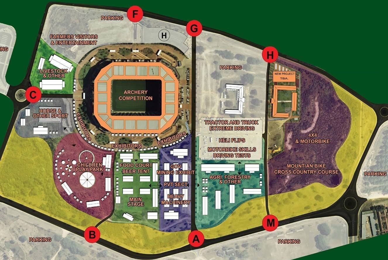 Mbombela Stadium layout displays all the nearby parking lots along with the location of the ground. Visitors can use the stadium layout map during events and shows. The location of the food court, alcoholic area, children’s play park, main stage, entry doors, multiple parking lots, entertainment areas, livestock counters, etc, can be seen on the stadium map.