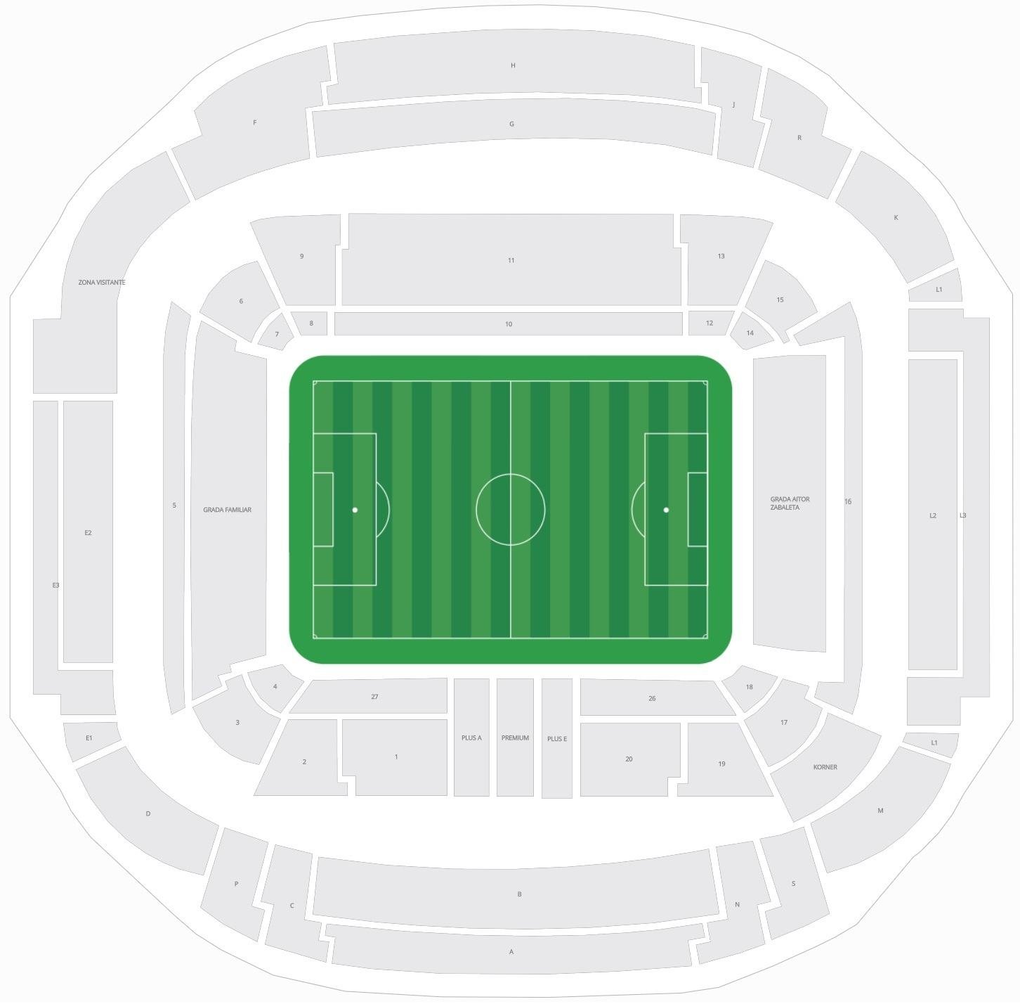 Real Sociedad’s La Liga games are hosted at this stadium. The Reale Arena seating map helps in locating the seats during the La Liga competitions. This ground hosts the home matches of Real Sociedad every season. The North Stand, South Stand, East Stand, and West Stand are the names of the stands. Away supporters are seated in the north stand, and home fans are sitting at the Aitor Zabaleta Grandstand situated in the South Stand. West Stand is the main stand of the ground, and it has premium seating options.