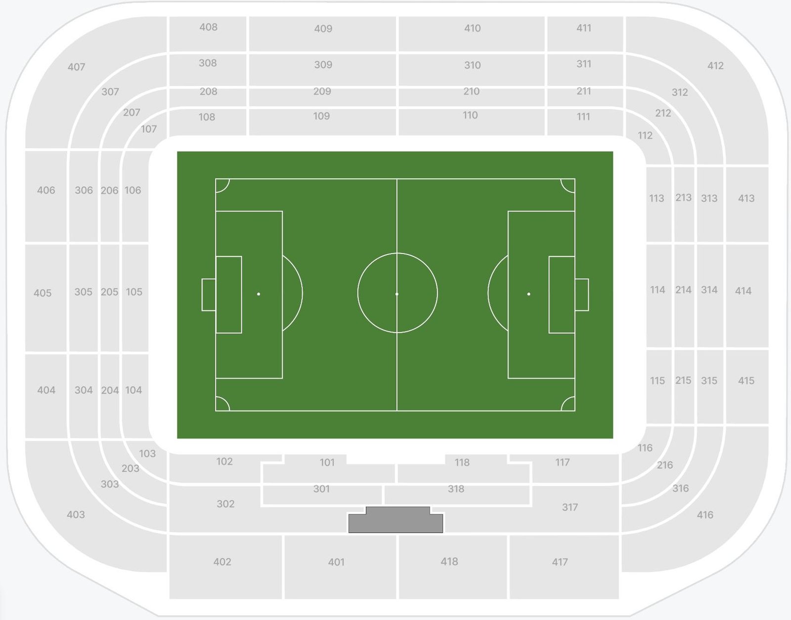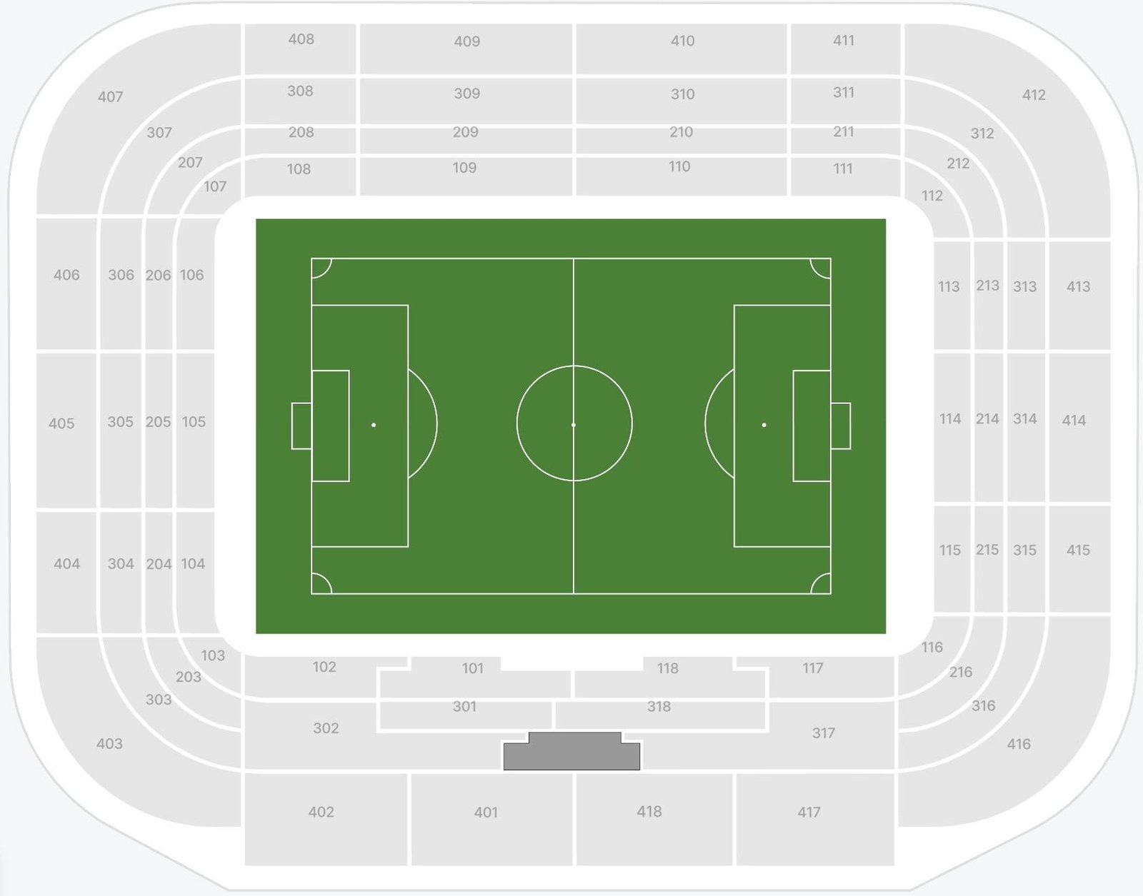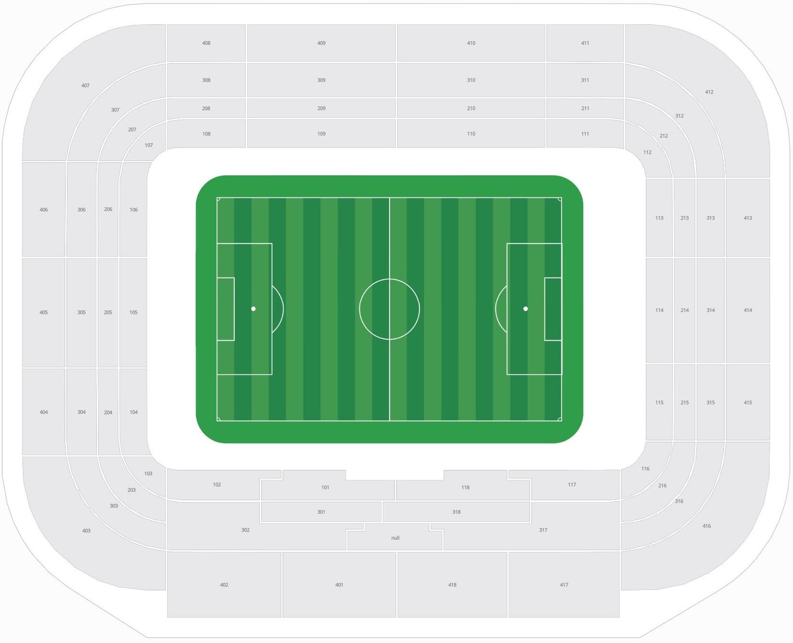 The names of the stands, along with row numbers, are depicted on the El Sadar stadium seating layout. The location of the goal posts and players’ dugout makes it easy to choose the best view seats on the ground. The location of every stand and rows along with their sections can be checked on the layout.