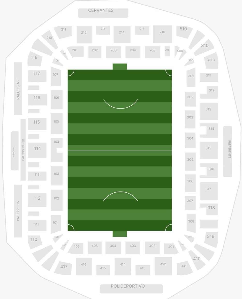 Mapa de Asientos del Campo de Fútbol de Mendizorrotza con numeración