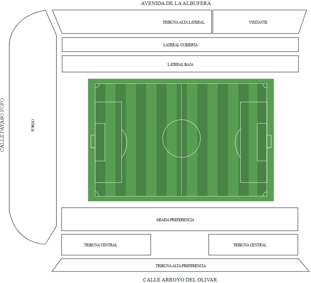 Estadio de Vallecas is one of the most popular football stadiums in the country, and the stadium map is also used to find the best view seats inside the stadium.