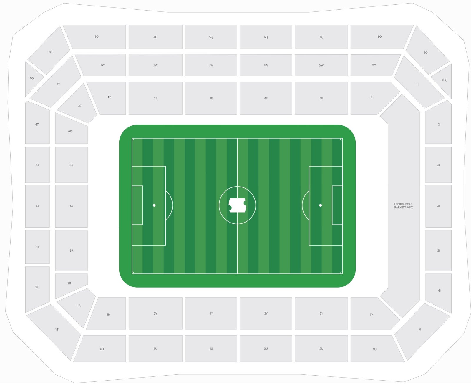 St. Jakob Park is the biggest sporting stadium in terms of seating capacity. St. Jakob Park can accommodate 38512 visitors for football, 37500 visitors for international matches, 40000 visitors for the concerts. With the help of the St. Jakob Park seating map with seat numbers and rows, it is easy to find and book the best view seats in the stadium.