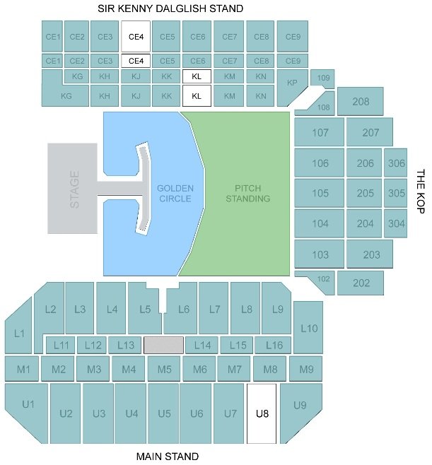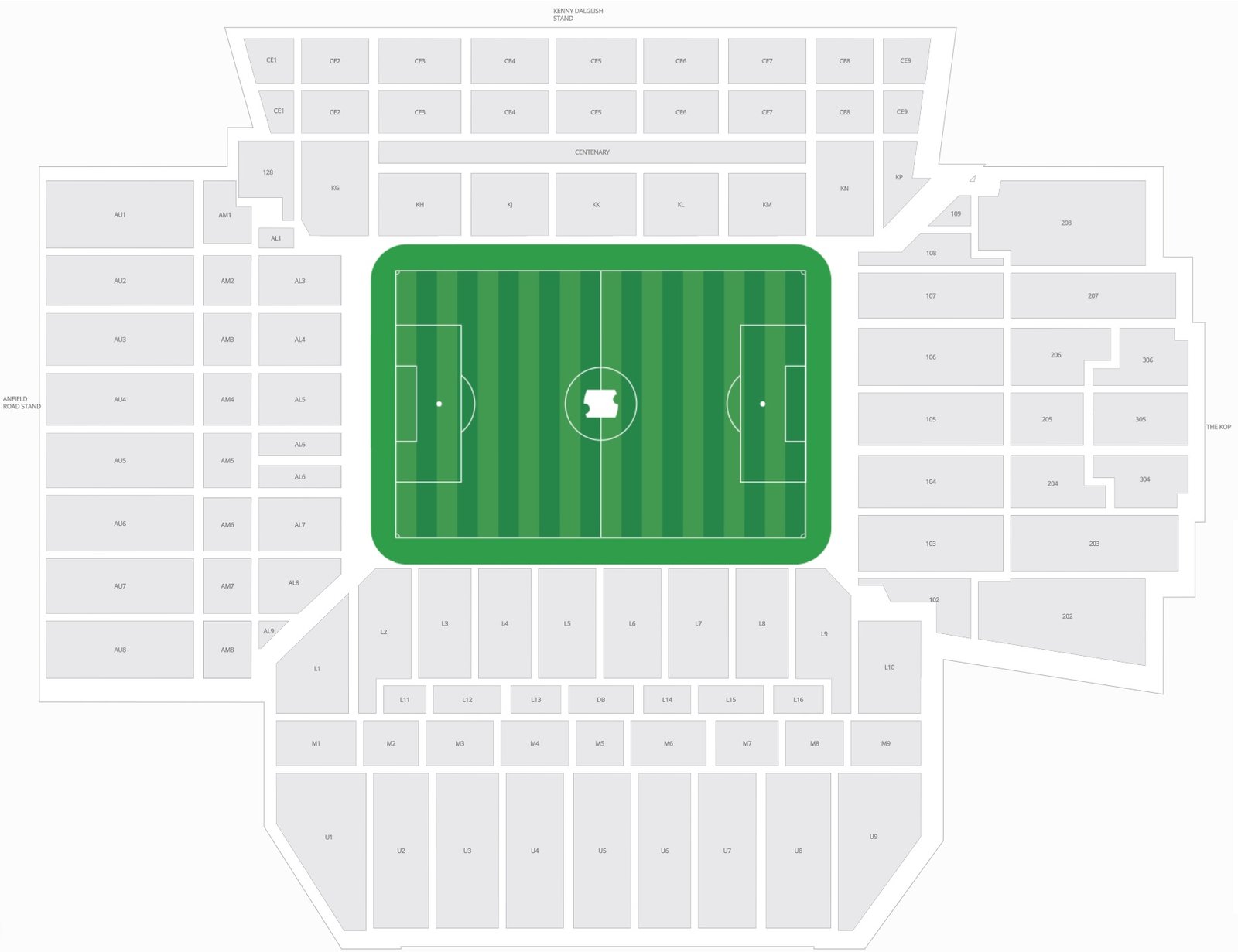 Anfield Seating Plan with seat numbers and Rows Liverpool