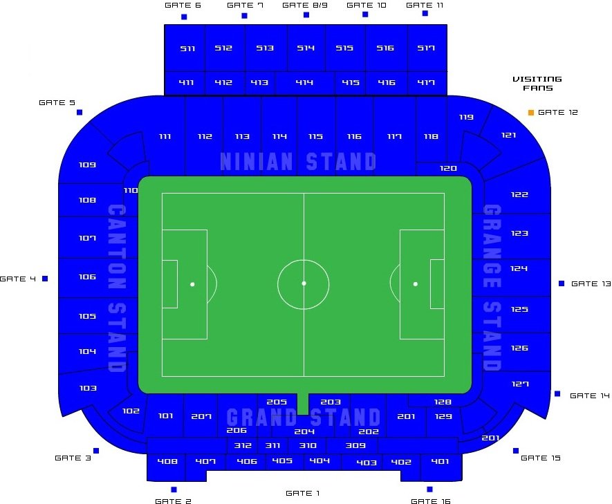 All essential sections, rows, entry gates, parking lots, and other features are depicted on the Cardiff City Stadium seating chart map. The locations of all the stands, along with the locations of rows and sections, are indicated on the map. These minute detail helps in finding the best view seats inside the stadium. The Grandstand, Family Stand, Ninian Stand, and Canton Stand are mentioned on the map with all the necessary details.