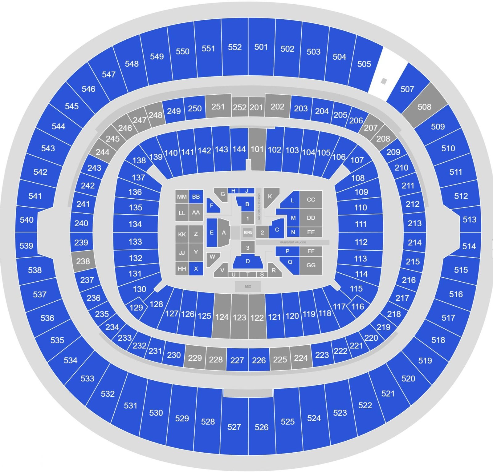 It is a multi-sports stadium, and boxing is a popular event in the United Kingdom. Wembley Stadium seating chart with rows and seat numbers for boxing games is published on the web page along with all the necessary information, which is crucial to finding the seats. The location of the stands, rows, sections, etc. is mentioned on the map. 90000 visitors can be seated at this Stadium during the hosting of football games, boxing and rugby league. The location of the Ring, seats in front of the boxing, VIP seating, premium seating, general seating, walking area, etc is mentioned on the map.