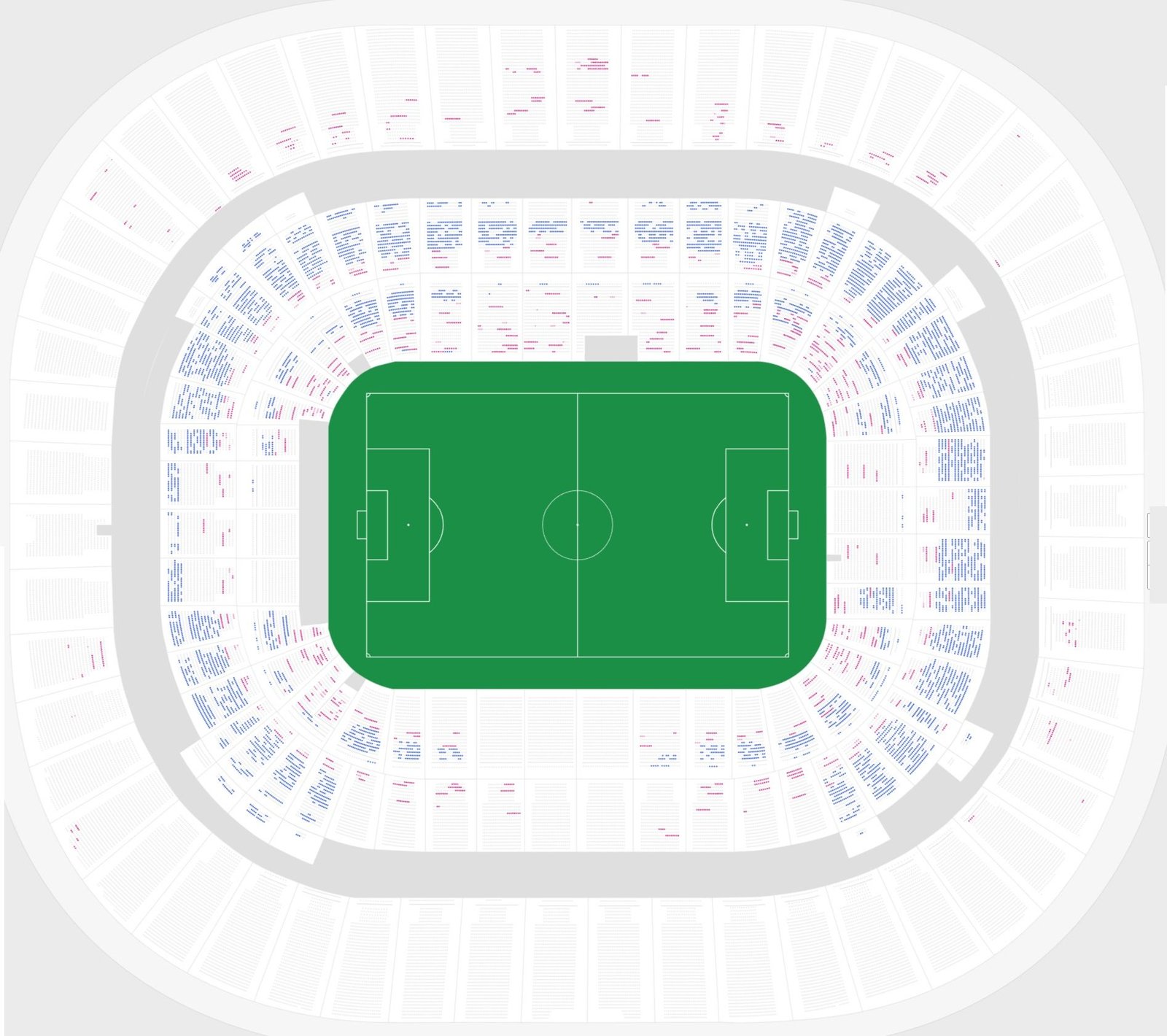 The names of the sections, stands, and rows, along with the temporary visitor area, are depicted on the seat map. Sometimes, the stands behind the stage are unusable because of the stage’s height. Therefore, the Stadium administration added temporary seats in front of the stage to increase capacity and enhance the experience. The stands and seats in front of the stage are generally among the most expensive seats.