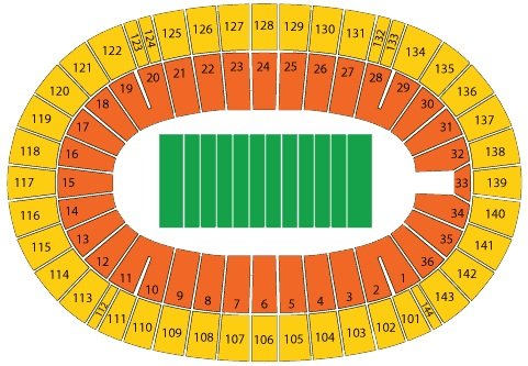 It is one of the biggest football stadiums in the state and the seats of the ground are spread across multiple levels. The location of the stands, along with their rows, sections, and bays, is mentioned on the map along with the location of the ground. All the seats of the stadium provide a good view of the event due to its bowl design.