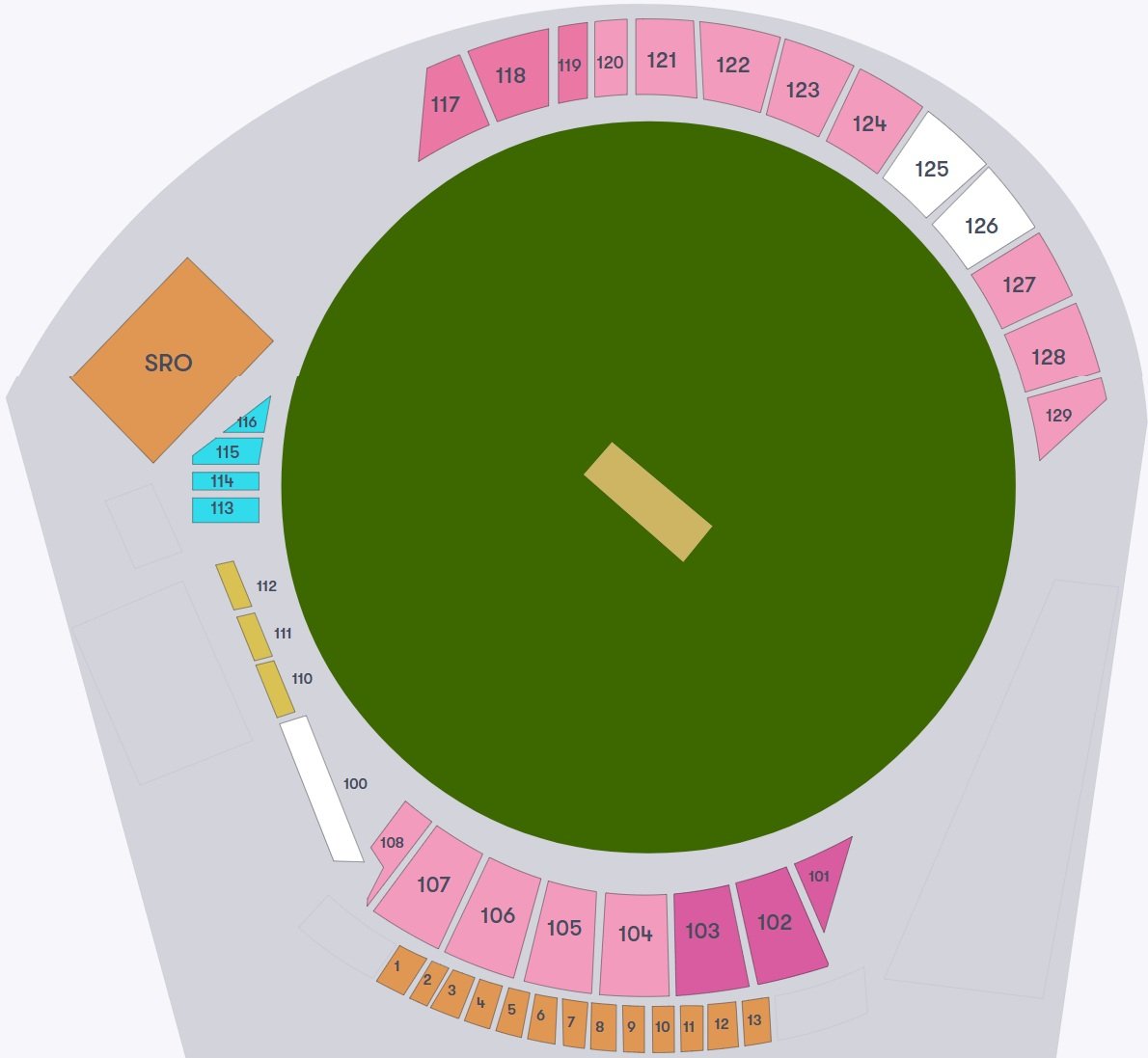 The seats of the stadium are divided into multiple stands and rows. The location of the stands, along with the rows with numbers, is depicted on the Grand Prairie Stadium seat layout map. The location of the ground, pitch, stands, entry gates, ticket booking box office counter, etc, are mentioned on the map.