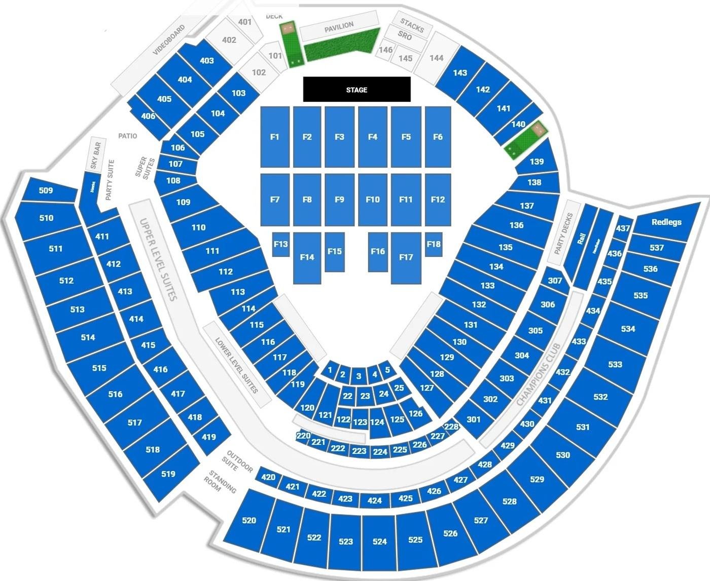 It is an ideal place for musical events, concerts, and other entertainment events. It can easily accommodate around 50000 guests after adding the temporary seats and a standing area in front of the stage. The Great American Ball Park stadium seating plan with seat numbers and rows for concerts is time-saving in finding the seats inside the stadium.