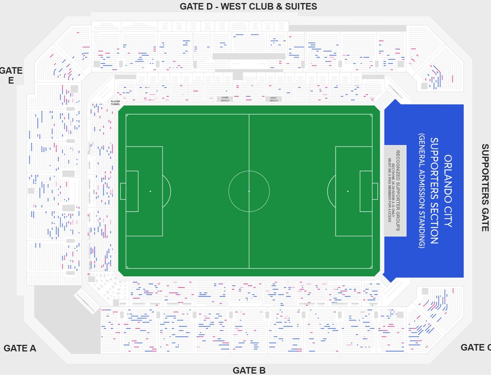 The layout of the Orlando City Stadium map shows all the vital information that is essential to locate seats. Inter&co Stadium seating plan with seat numbers helps in finding the best view seats in the stadium, along with ticket booking. Some of the sections of the stadium are reserved for the members and premium guests. The location of premium seating, club seating areas, members’ area, VIP seating, suites, deck, etc are displayed on the seating chart arrangement.