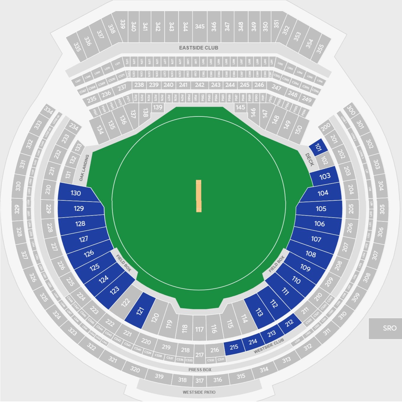 Oakland Coliseum is the home ground of the San Francisco Unicorns MLC team. The seating arrangement map for the cricket matches is almost similar to the above image. Visitors coming to this stadium to watch live games of cricket can check the Oakland Coliseum seating plan map.