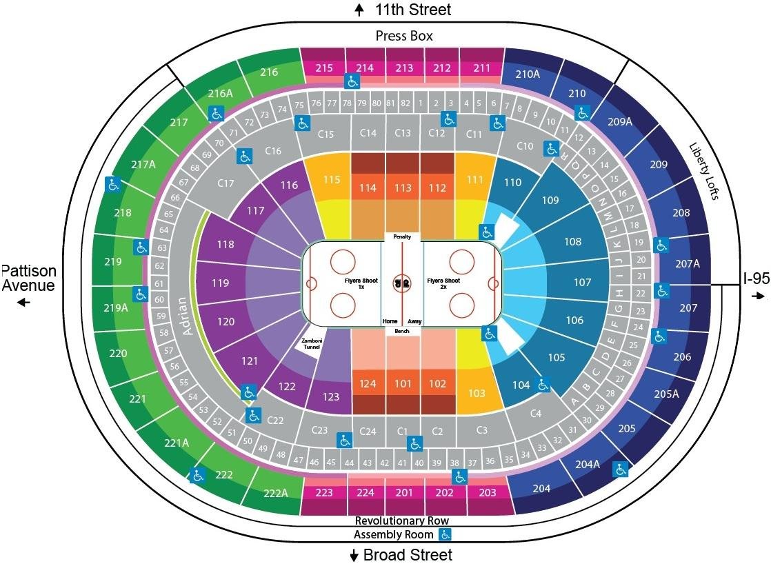 It is a primary Indoor Stadium to host Ice Hockey and Basketball matches frequently. The seating arrangement map of the Indoor Stadium helps to book the best-view seats of the stadium. The Xfinity Mobile Arena Indoor Stadium has a seating capacity of 19173 and can accommodate 21000 spectators during basketball games. It can accommodate more than 21000 spectators during the hosting of high-voltage concerts or events.